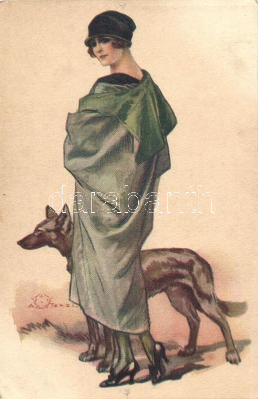 Italian art postcard, lady with dog, Anna & Gasparini 457-5. s: A. Terzi (EK)