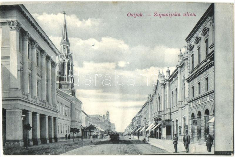 Eszék, Esseg, Osijek; Megye utca, Rudolf Ungar és fiai üzlete / Zupani...
