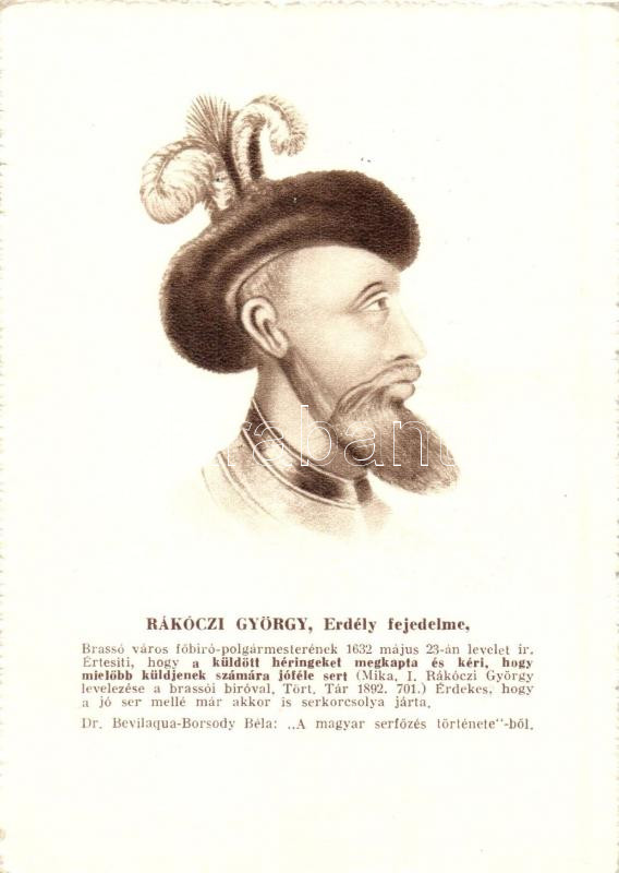 Rákóczi György erdélyi fejedelem; Dr. Bevilaqua-Borsody Béla "A magyar serfőzés története"-ből / George I Rákóczi, Prince of Transylvania, excerpt from Dr. Béla Bevilaqua-Borsody's 'History of the Hungarian Brewery'