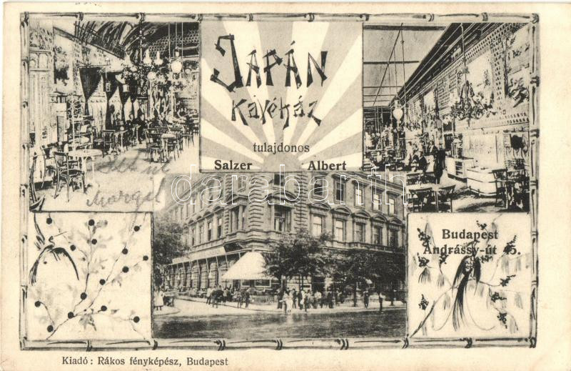 Budapest VI. Salzer Albert Japán Kávéháza, belső, kiadja Rákos fénykép...