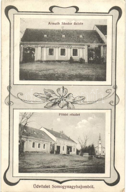 Nagybajom, Somogynagybajom; Főtér, Armuth Sándor üzlete és koporsóraktára, Art Nouveau floral