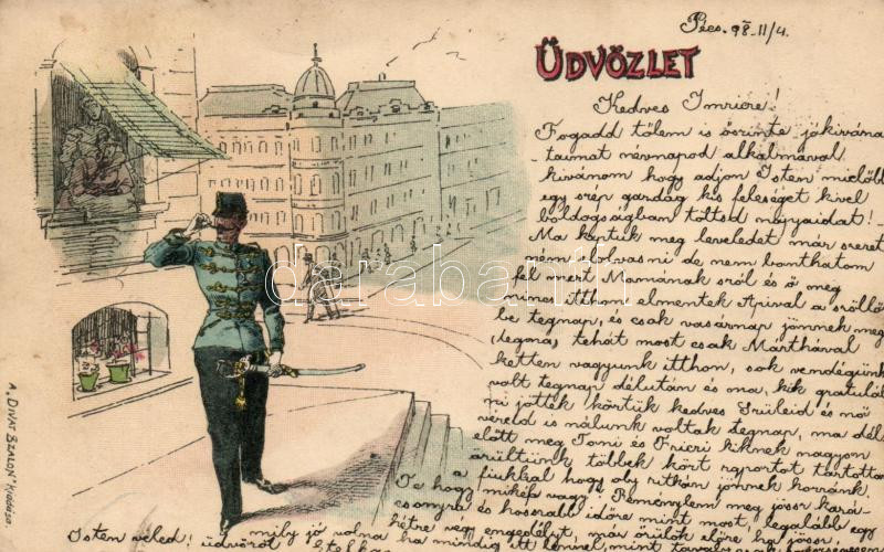 1898 Magyar honvéd huszár; a Divat Szalon kiadása / Hungarian hussar 'Grüss aus...' litho (fl)