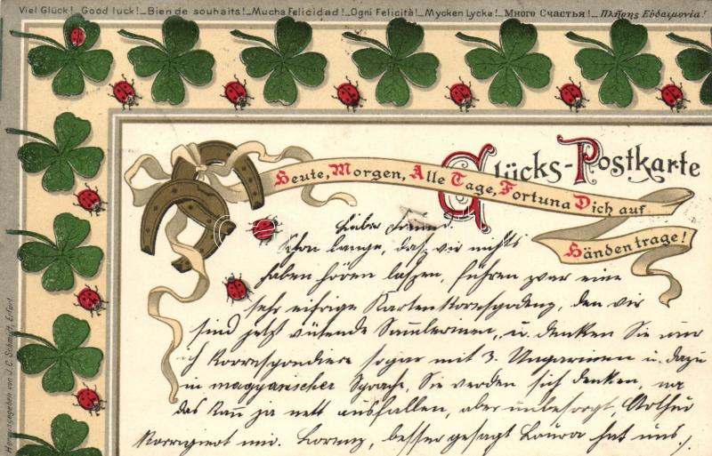 1899 Glücks-Postkarte herausgeben von J. C. Schmidt/ Good Luck! litho ...