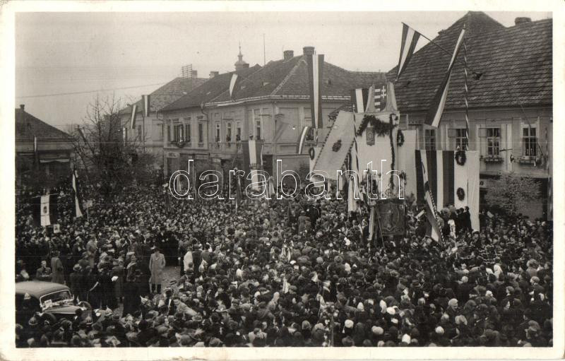 1938 Érsekújvár, Nové Zamky; bevonulás / entry of the Hungarian troops, '1938 Érsekújvár visszatért' So. Stpl