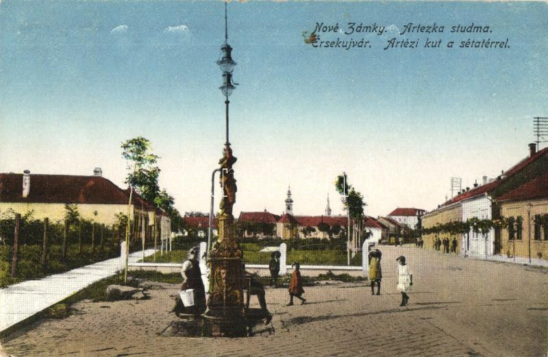 Érsekújvár, Nové Zamky; Artézi kút, sétatér / well, promenade