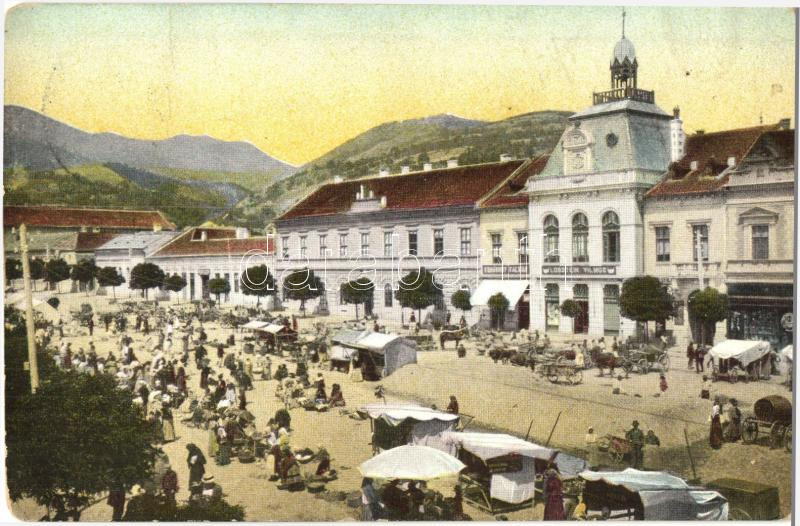Déva, Deva; piactér, Lobstein Vilmos és Komáromy Kálmán üzletei, Hirsc...