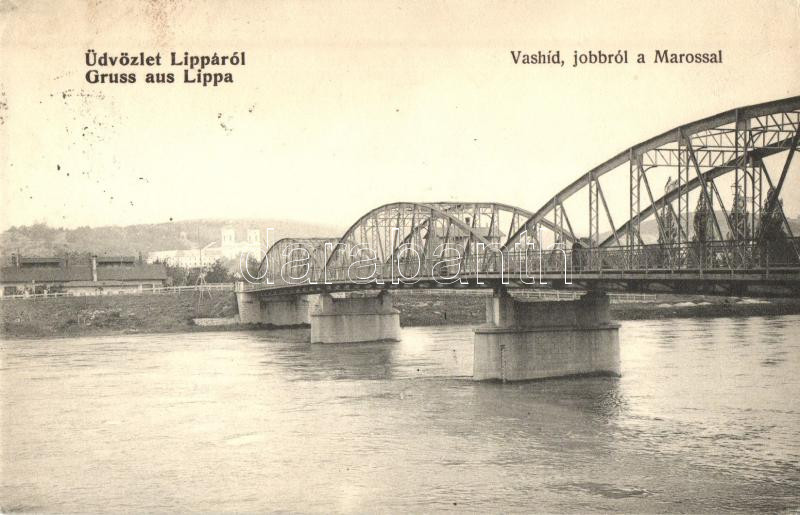 Lippa, Lipova; Vashíd, Maros folyó / iron bridge, river Maros