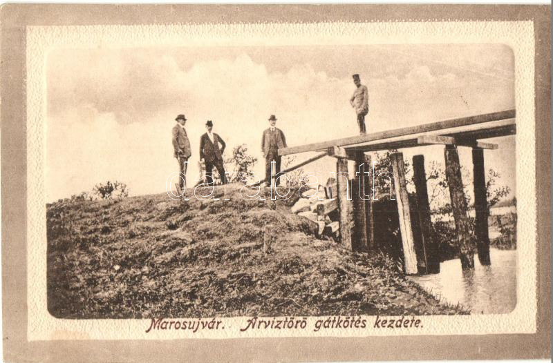 Marosújvár, Ocna Mures; Árvíztörő gátkötés kezdete / dam construction ...