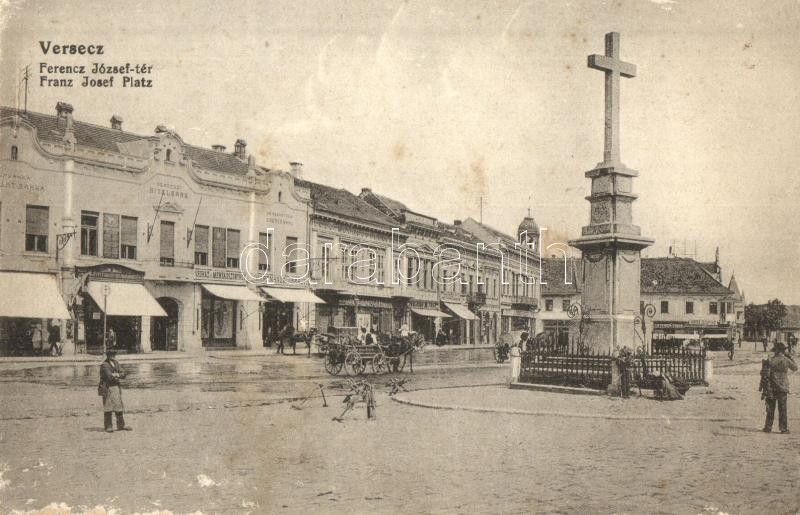Versec, Vrsac; Ferenc József tér, Hitelbank, Áruház a Menyasszonyhoz, ...