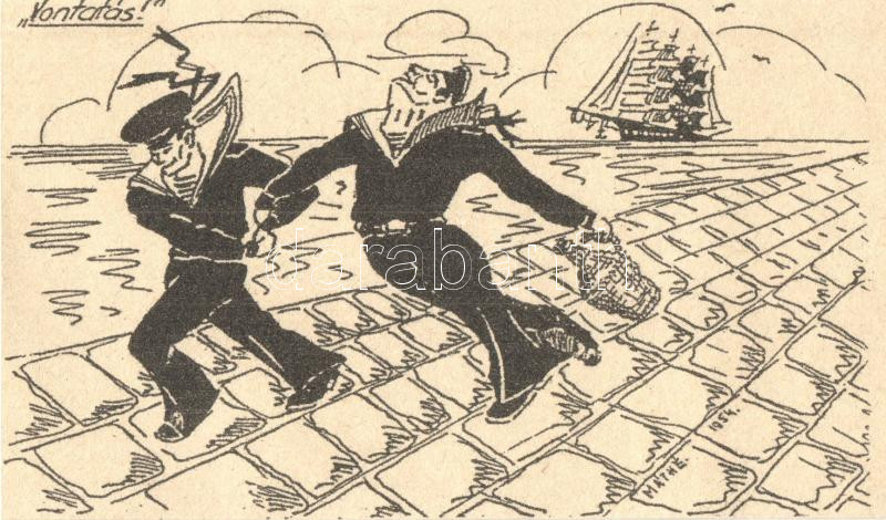 1954 'Vontatás' matrózok, humoros grafikai képeslap / mariners, humorous graphic postcard s: Máthé