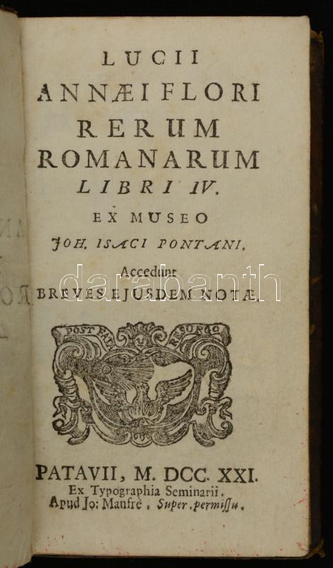 Lucius Annaeus Florus: Rerum Romanarum libri IV. Passau, 1721, ex typo... https://www.darabanth.com/en/282-Online-auction/282.0/Books/Books-Foreign-languages~38/Lucius-Annaeus-Florus-Rerum-Romanarum-libri-IV-Passau-1721-ex-typografia-seminarii-Kicsit-kopot~II1455817