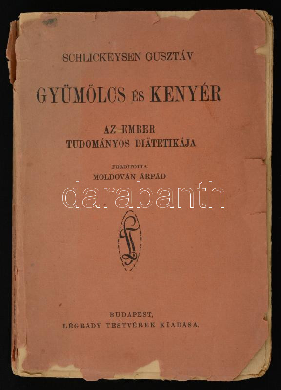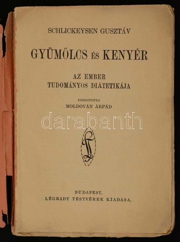 Schlickeysen Gusztáv: Gyümölcs és kenyér. Az ember tudományos diatetik... https://www.darabanth.com/en/282-Online-auction/282.0/Books/Books-Kitchen-and-garden~28/Schlickeysen-Gusztav-Gyumolcs-es-kenyer-Az-ember-tudomanyos-diatetikaja-Forditotta-Moldov~II1457439