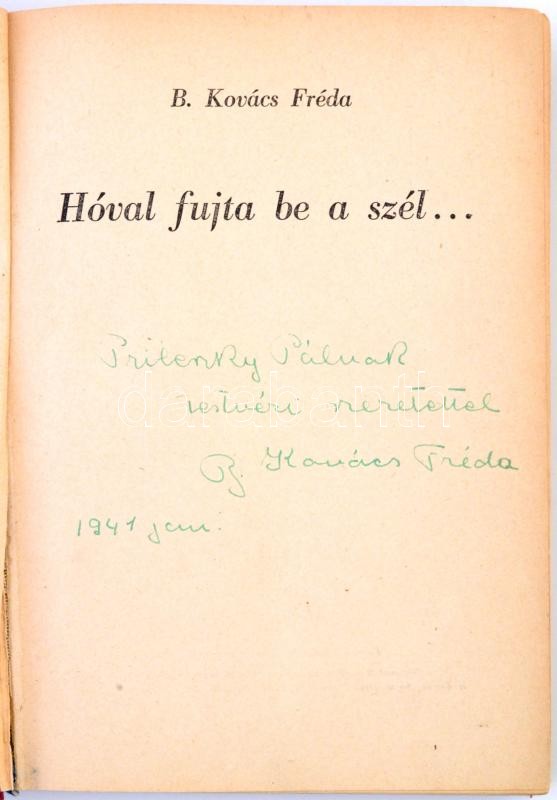 B. Kovács Fréda: Hóval fujta be a szél... Budapest, 1940, Könyv- és La... https://www.darabanth.com/en/282-Online-auction/282.0/Books/Books-Other-rarities~40/B-Kovacs-Freda-Hoval-fujta-be-a-szel-Budapest-1940-Konyv-es-Lapkiado-Rt-Kiadoi-ege~II1443885