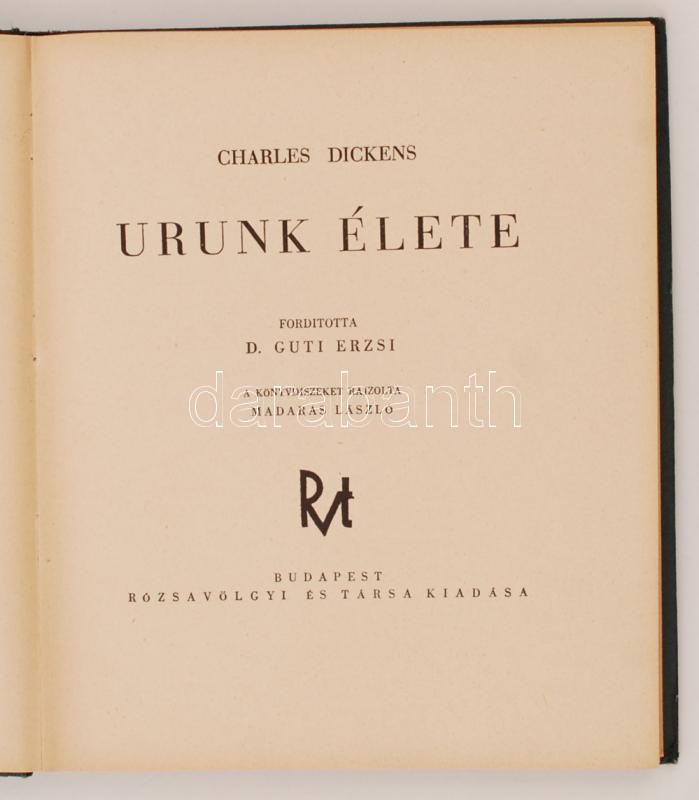 Charles Dickens: Urunk élete. A könyvdíszeket rajzolta: D. Guti Erzsi. Budapest, é.n., Rózsavölgyi és Társa Kiadása. Korabeli egészvászon kötésben
