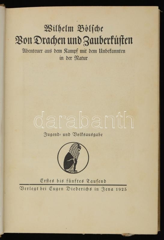 Wilhelm Bölsche: Von Drachen und Zauberküsten. Abenteuer aus dem Kamps... https://www.darabanth.com/en/282-Online-auction/282.0/Books/Books-Other-rarities~40/Wilhelm-Bolsche-Von-Drachen-und-Zauberkusten-Abenteuer-aus-dem-Kamps-mit-dem-Unbekannten-in-der-~II1456479