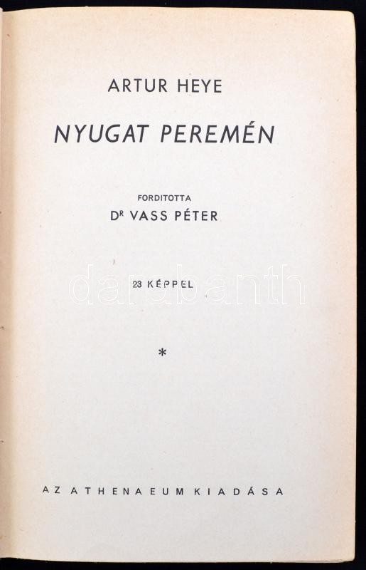 Arthur Heye: Nyugat peremén. Ismeretlen világok. Bp., é.n., Athenaeum. Kiadói kopottas aranyozott egészvászon-kötésben.