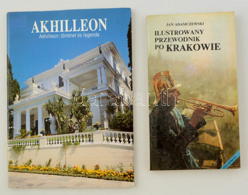 Vegyes útikönyyv tétel, 2 db: Jan Adamczewski: Illustrowany prezwodnik po Krakowie. Warsawa, 1989, Wydawnitctwo Interpress. Kiadói papírkötés, számos képpel illusztrálva, lengyel nyelven. Krakkó útikönyv. / Paperbinding, in polish language. Eleni Palaszka- Papasztathi: Akhilleon: történet és legenda. Bp., 1995, Lola Kiadó. Kiadói papírkötés, számos képpel illusztrálva.