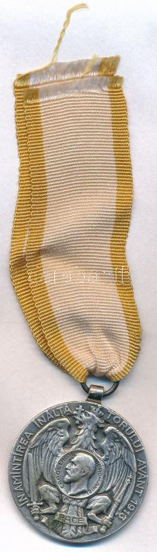 Description: Románia 1913. "Második Balkán-háború Győzelmi Medál" fém kitüntetés másolat mellszalagon, "S" jelzéssel a peremen T:2 ph.