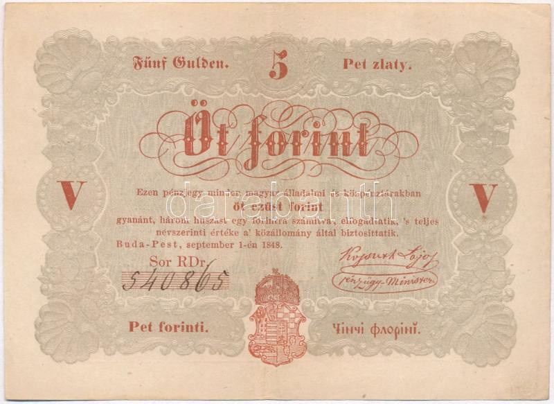 https://www.darabanth.com/en/282-Online-auction/282.0/Numismatics/Hungarian-Banknotes~300006/1848-5Ft-Kossuth-banko-vorosesbarna-TIII-szep-papir~II1459731