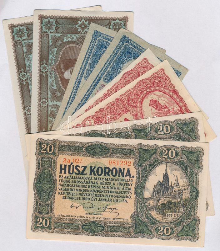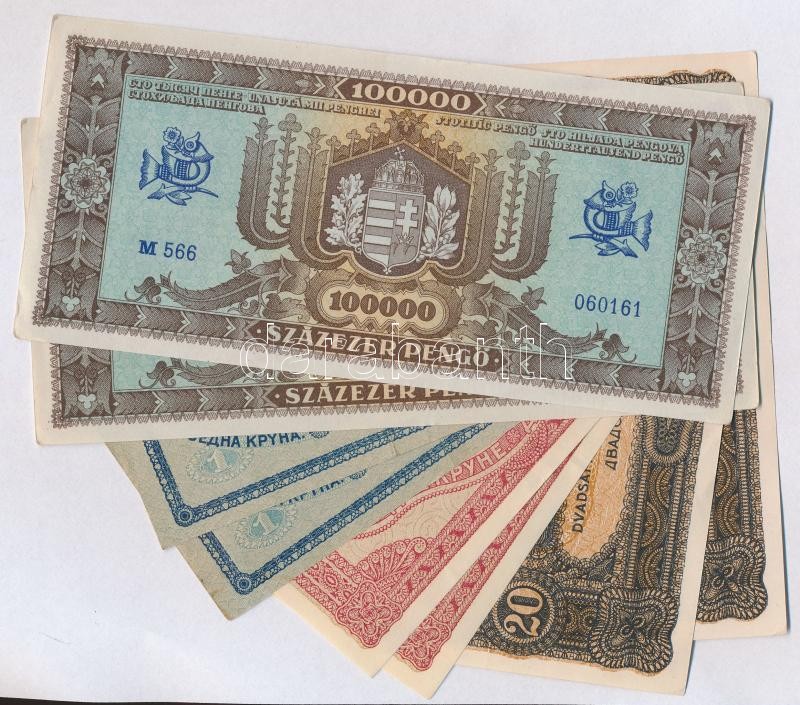 1920-1946. sorszámkövető bankjegypárok (4xkfl), közte 1920. 1K (2x) sorszámkövetőek + 1920. 2K (2x) "2ab" sorozat, sorszámkövetők + 1920. 20K (2x) sorszámkövetők + 1945. 100.000P (2x) sorszámkövetők T:I-,II