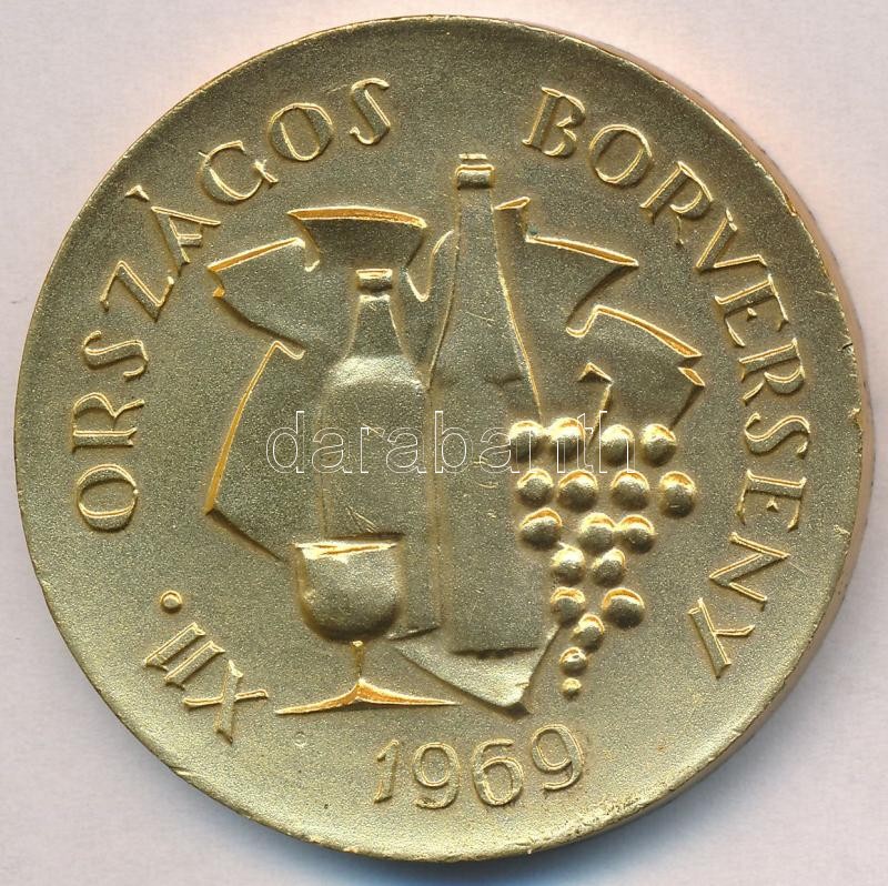 1969. "Agria / XII. Országos Borverseny" aranyozott fém emlékérem, eredeti tokban (50mm) T:2