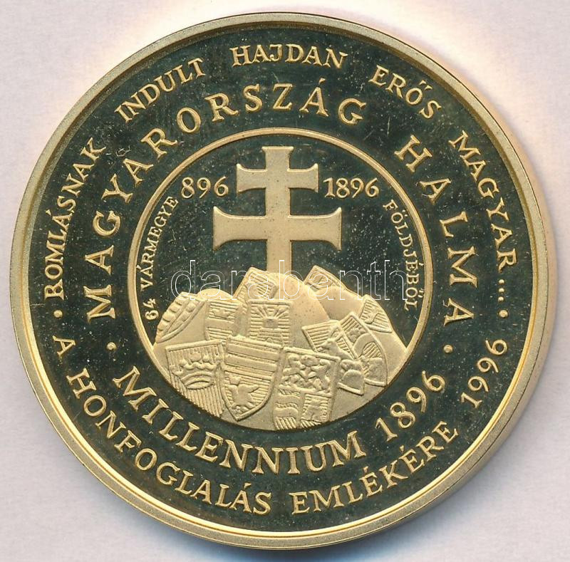 1996. "Magyarország halma - Millenium 1896 - A Honfoglalás emlékére 1996" aranyozott Br emlékérem, másik oldalán a Himnusz szövegével (42,5mm) T:1(PP) ujjlenyomat