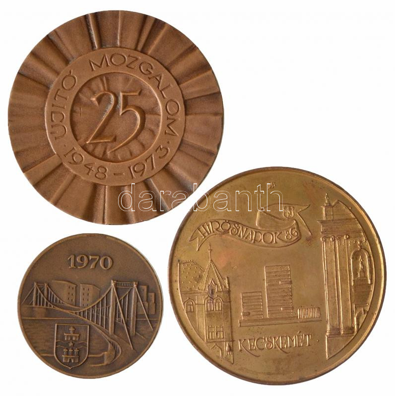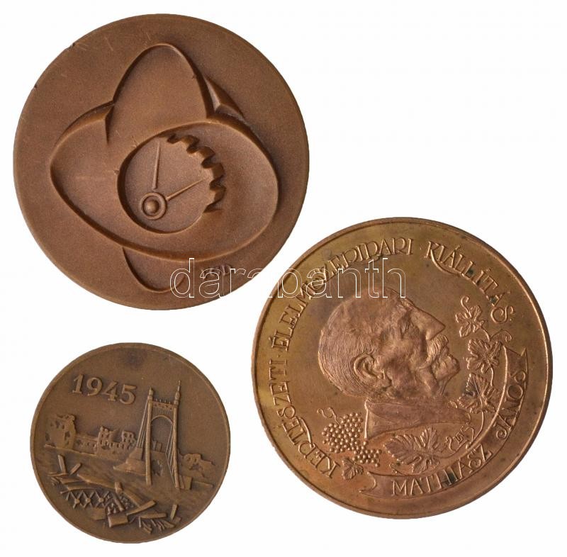 4db-os vegyes magyar emlékérem tétel, közte Lapis András (1942-) 1986. "Kertészeti Élelmiszeripari Kiállítás - Mathiász János / Hírösnapok 86. - Kecskemét" Br emlékérem (60mm), Fekete Géza (Dezső) (1939-) 1973. "Újító Mozgalom" Br emlékérem dísztokban (60mm), DN "Tessedik Sámuel 1742-1820 - Folyton szemelőtt tartom, hogy hazámnak s az emberiségnek használnom kell" Br plakett. Szign.: Kékesi-Kallós (93mm) T:1-,2