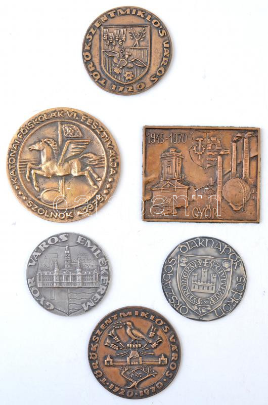 https://www.darabanth.com/en/282-Online-auction/282.0/Numismatics/Hungarian-commemorative-medals-and-plaques~300008/6db-os-plakett-es-emlekerem-tetel-Br-es-ezustozott-Br-magyar-varosok-Torokszentmiklos-~II1430133