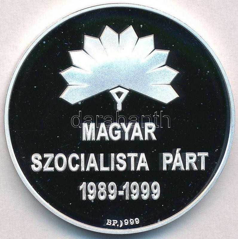 ~1990. "Magyar Szocialista Párt 1989-1999 / Európai Szocialisták Pártja" jelzett Ag emlékérem dísztokban (31,22g/0,999/42,5mm) T:PP
