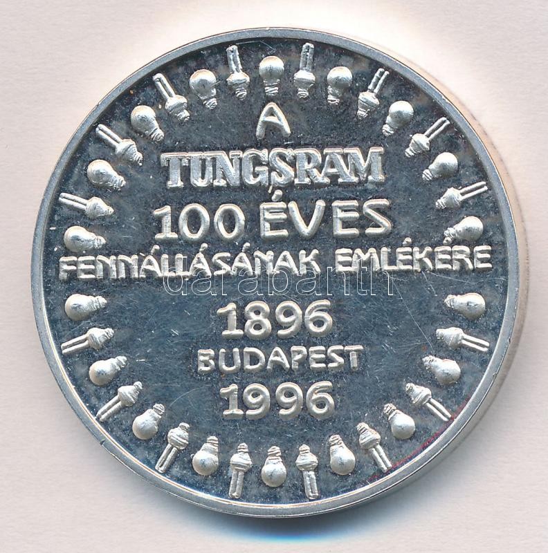 Fritz Mihály (1947-) 1996. "100 év a fényért / A Tungsram 100 éves fennállásának emlékére 1896-1996" ezüstözött fém emlékérem (42,5mm) T:2 (PP)