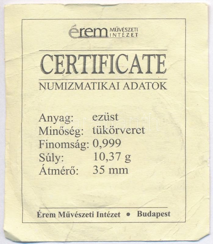 DN "A magyar nemzet pénzérméi - Szent István és az első magyar pénz 997-1038" Ag emlékérem tanúsítvánnyal (10,38g/0.333/35mm) T:PP felületi karc