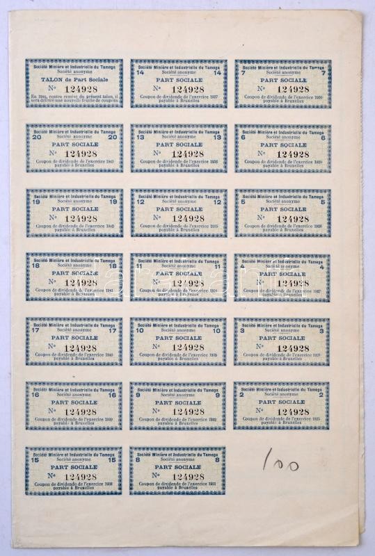 Belgium / Brüsszel 1923. "Tamegai Bányász és Ipari Részvénytársas... https://www.darabanth.com/en/282-Online-auction/282.0/Numismatics/Shares-and-Tickets~300004/Belgium-Brusszel-1923-Tamegai-Banyasz-es-Ipari-Reszvenytarsasag-nevertek-nelkuli-r~II1404562
