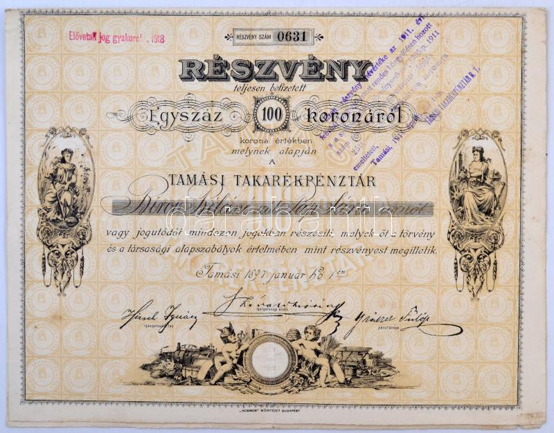 https://www.darabanth.com/en/282-Online-auction/282.0/Numismatics/Shares-and-Tickets~300004/Tamasi-1897-A-Tamasi-Takarekpenztar-reszvenye-100K-rol-szarazpecsettel-felulbelyegzC3~II1431648