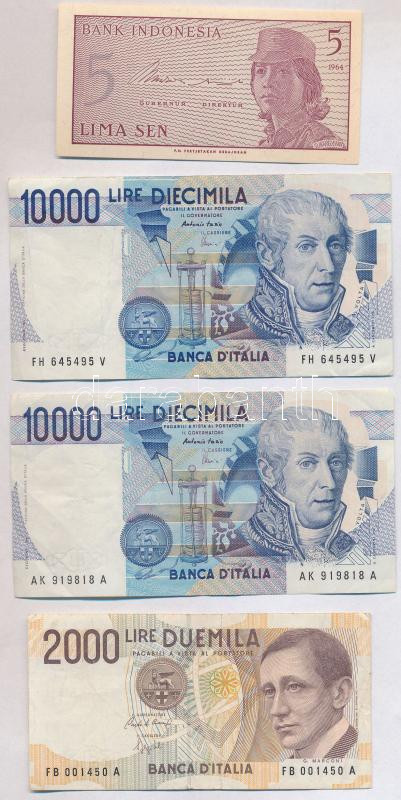 Vegyes: Indonézia 1964. 5S + Olaszország 1984. 10.000L (2x) + 1990. 20...