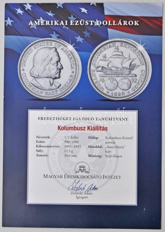 Amerikai Egyesült Államok 1893. 1/2$ Ag "Kolombusz Kristóf" ...