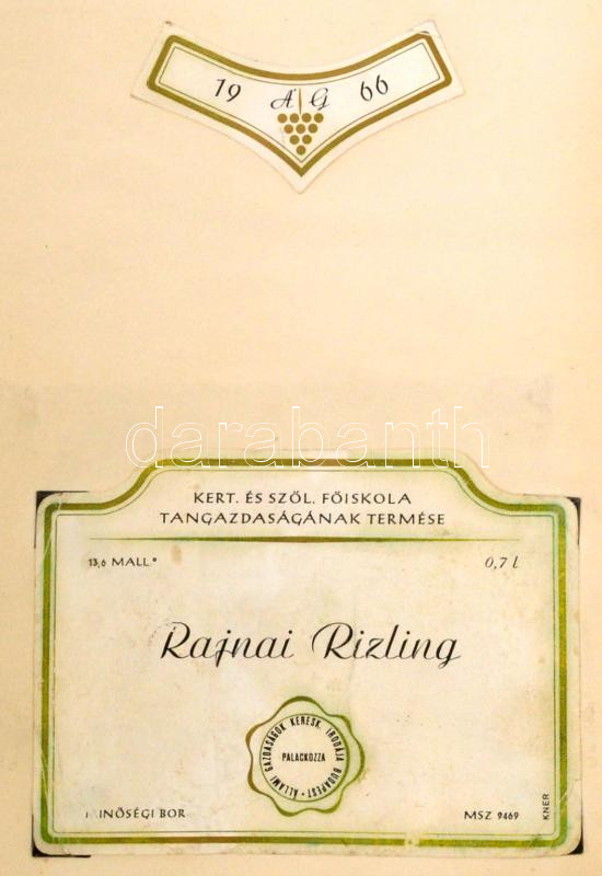 116 darabos borcímke gyűjtemény, benne sok 1960 környékéről. Albumban / Collection of 116 wine-labels