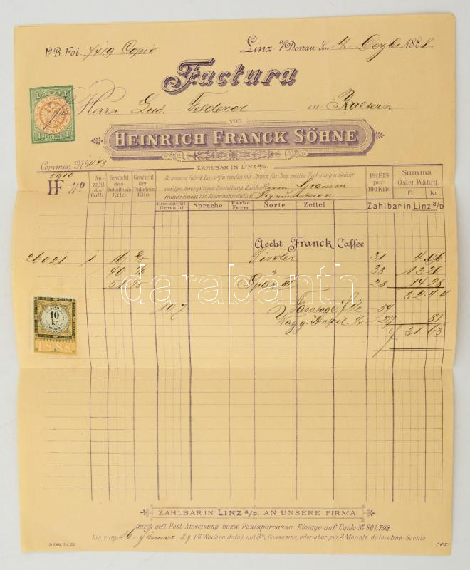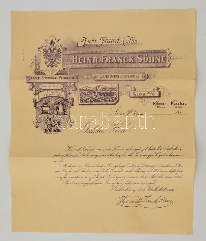 https://www.darabanth.com/en/282-Online-auction/282.0/Other-collectibles/Advertisement~32/7E1880-Franck-kave-diszes-szamla~II1458552
