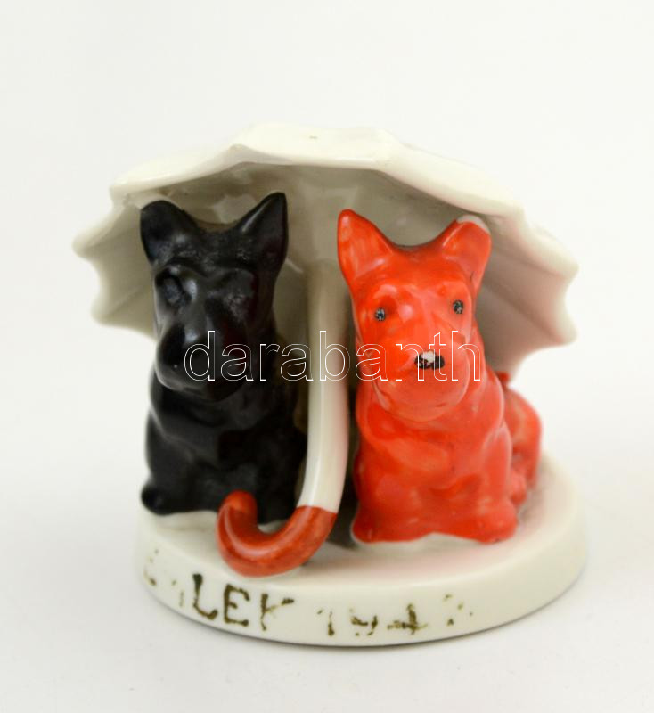 "Emlék 1942" porcelán kutyusok, jelzés nélkül, apró lepattanással, 5cm