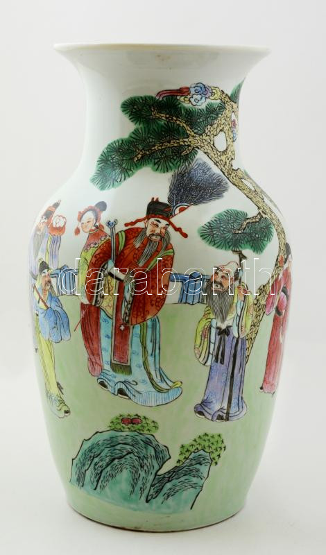 Kínai padlóváza, kézzel festett, jelzett, hibátlan, m:37 cm