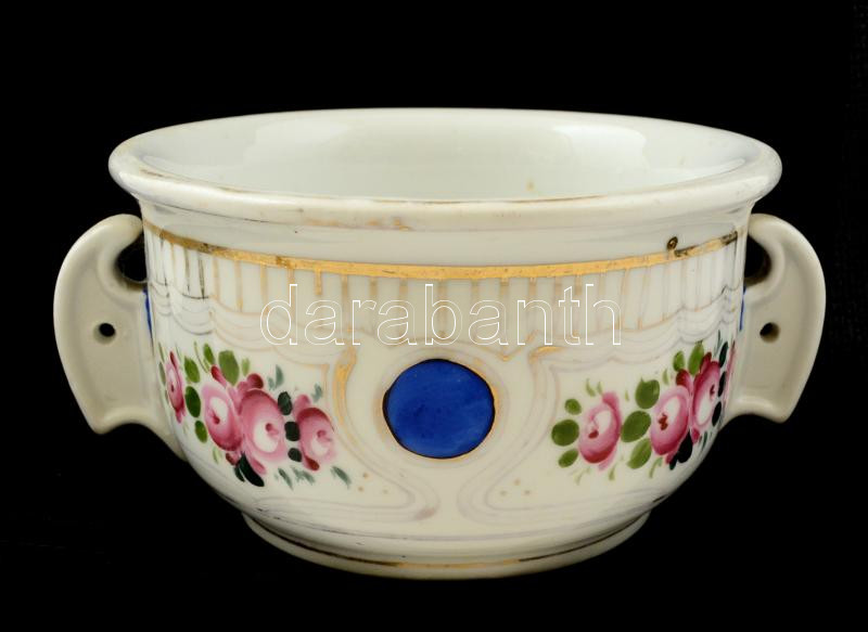 Porcelán edény, kézzel festett, jelzés nélkül, lekopásokkal, d: 15 cm