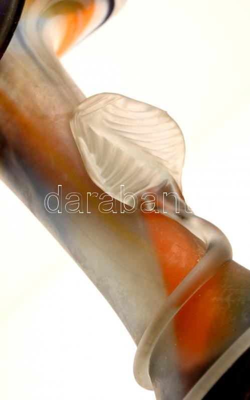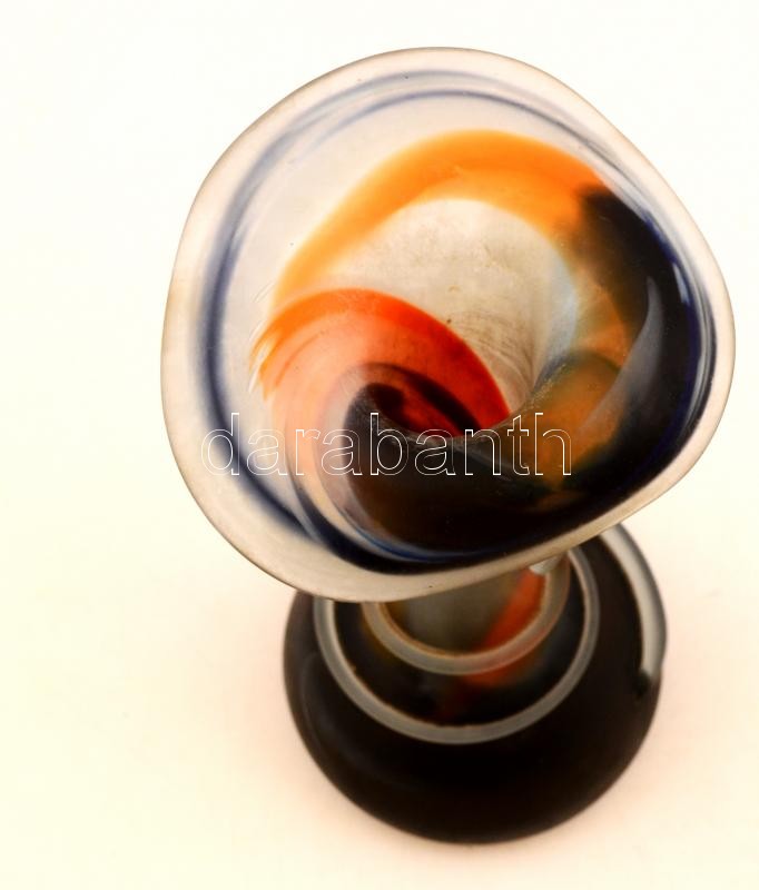 Fújt díszváza, anyagában színezett, szál díszítéssel, jelzés nélkül, k...