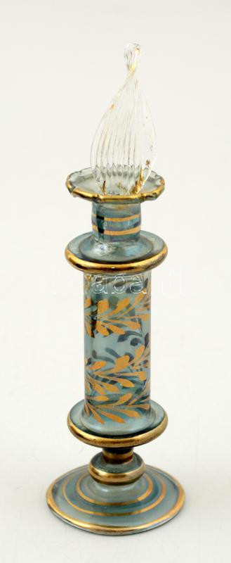 Régi parfümös üveg, sérült nem bele illő dugóval, aranyozással, m: 9,5...