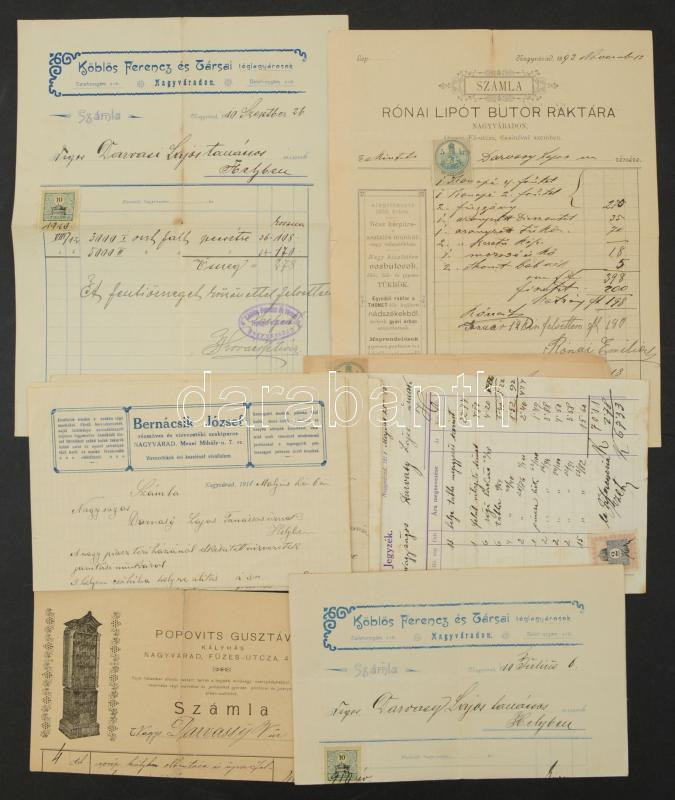 https://www.darabanth.com/en/282-Online-auction/282.0/Other-collectibles/Historical-documents-manuscripts~27/cca-1910-9-db-kulonfele-nagyvaradi-diszes-fejleces-szamla~II1455429