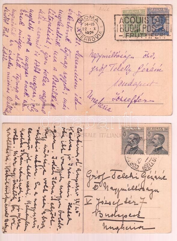cca 1924-1939 6 db, feltehetőleg családtagok által írt levelezőlap Teleki Pál miniszterelnök anyának, illetve feleségének és menyének címezve