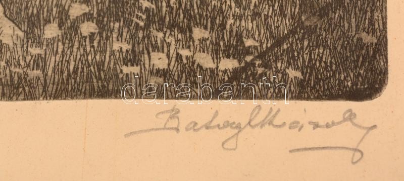 Balogh Károly (?-?): Kaszálás. Rézkarc, papír, jelzett, üvegezett kere...
