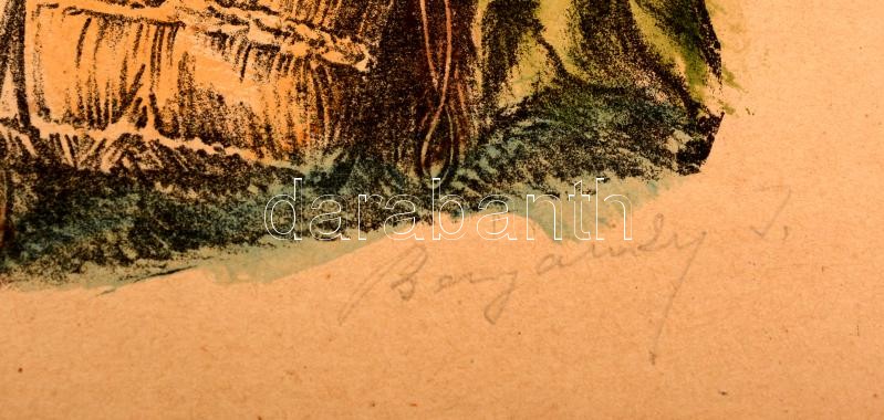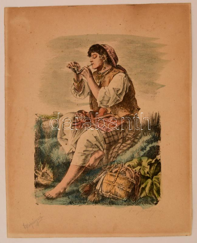 Benyovszky István (1898-1969): Cigány nő, színezett litho, papír, jelz...
