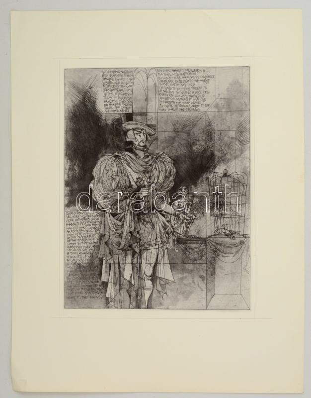 Kass János (1927-2010): Hamlet. Rézkarc, papír, jelzés nélkül, 38×28 c...