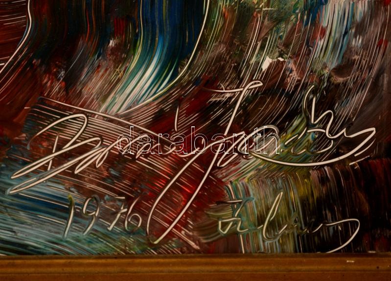 Olvashatatlan jelzéssel: Kompozíció. Olaj, farost, sérült keretben, 67...