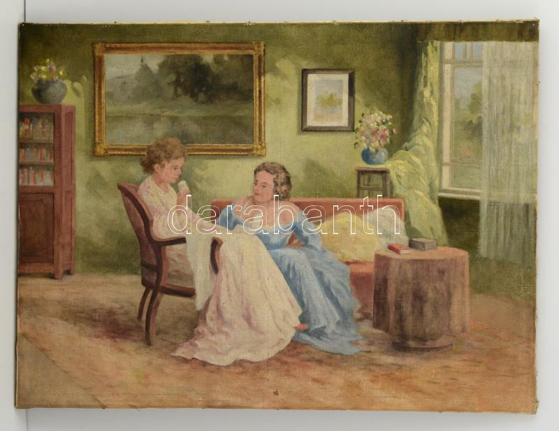 Olvashatatlan jelzéssel: Nem várt levél. Olaj, vászon, festék lepattanásokkal, 58×78 cm