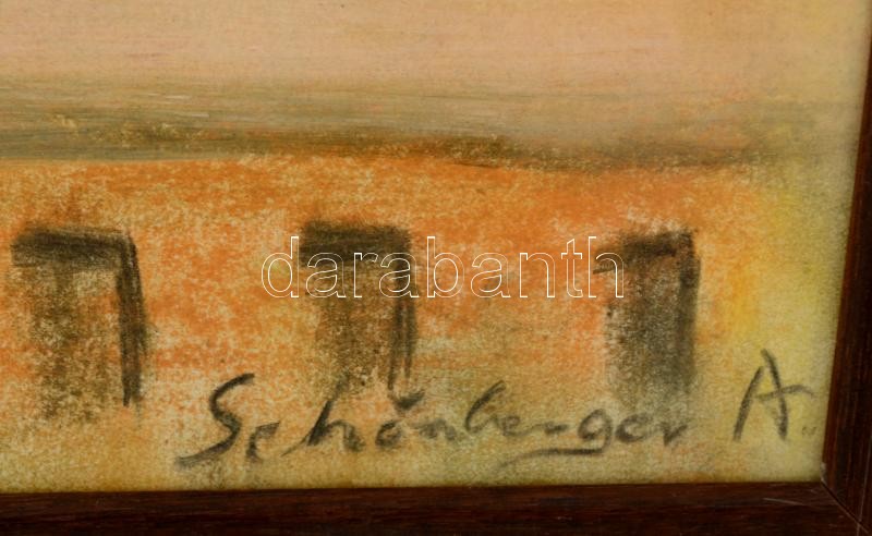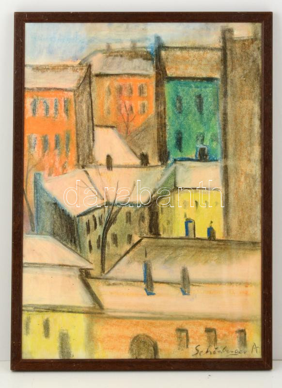 Schönberger jelzéssel: Háztetők. Pasztell, papír, üvegezett keretben, ...